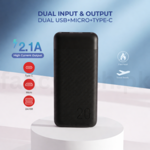 - 20W PD Fast Charging via USB-C — Input and output support Power Delivery up to 20W (5V/3A, 9V/2A, 12V/1.67A). Recharge the power bank quickly or charge devices wired at high speeds.