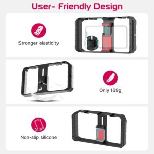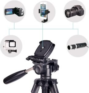 360° Rotatable Phone Holder: Features an adjustable clamp with 360° rotation, fitting smartphones 2.3–3.5 inches wide for portrait or landscape shooting flexibility.