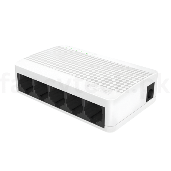 he Tenda S105 is a compact, reliable, and energy-efficient 5-port 10/100Mbps Fast Ethernet desktop switch designed for home offices, small businesses, and SOHO environments. This unmanaged plug-and-play switch instantly expands your wired network with five auto-sensing RJ45 ports, supporting 10/100Mbps auto-negotiation for seamless connectivity with PCs, printers, IP cameras, smart TVs, and gaming consoles.