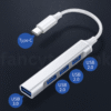 USB-C to 4-Port Hub: 1x USB 3.0 + 3x USB 2.0 High-Speed Adapter