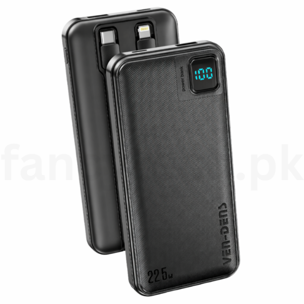 VEN-DENS VD-PB060 10000mAh Power Bank with 22.5W super fast charging! Smart digital LED display shows exact battery percentage. Built-in cables + full safety protection for worry-free use. Ideal portable charger for iPhone, Samsung, and all devices! ⚡🔋